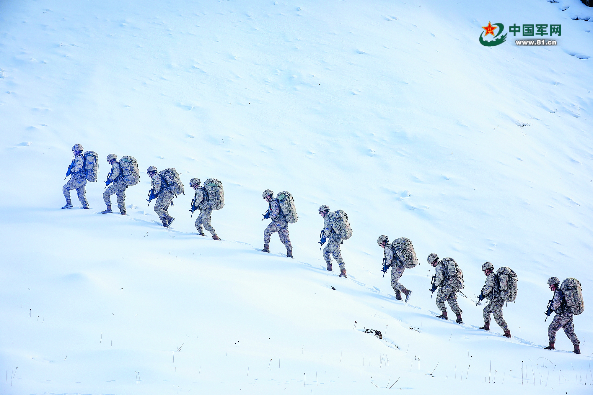 山南军分区某边防连官兵在巡逻途中。张照杰摄