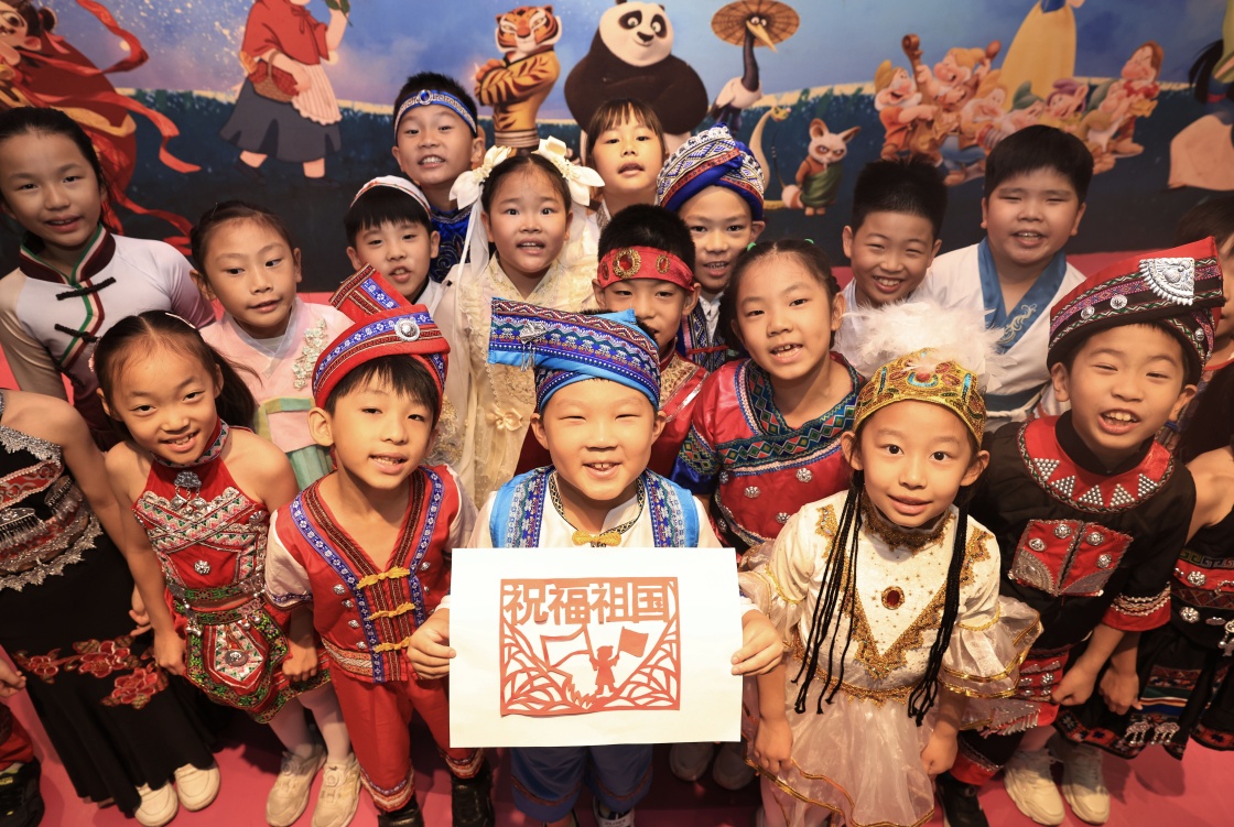 9月25日,在湖北省武汉市,未来实验小学学生开展迎国庆主题活动。新华社发(赵军 摄)