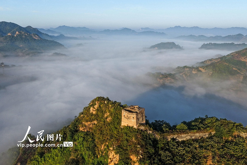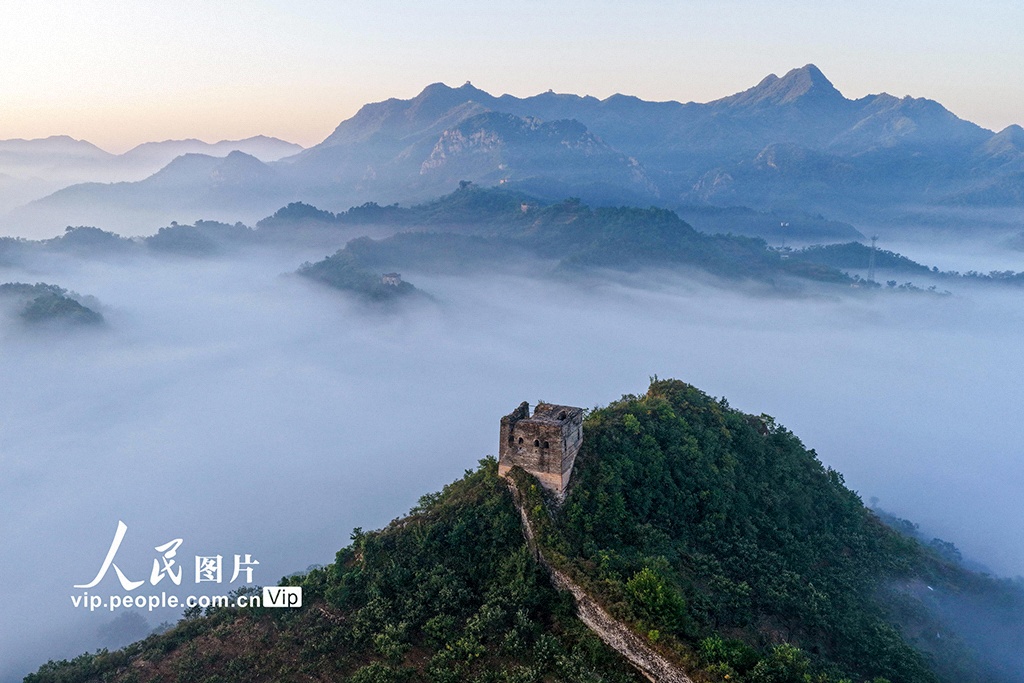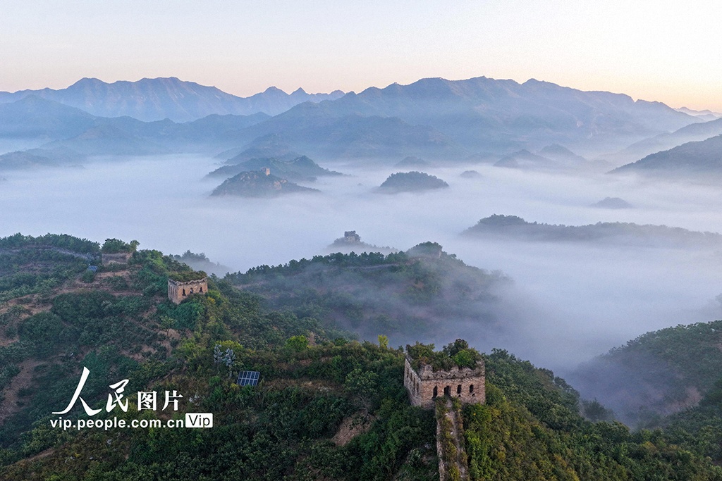 2025年9月25日,河北省唐山市迁西县北部长城出现云海景观,云雾涌动,长城若隐若现,壮美如画。王爱军摄(人民图片网)