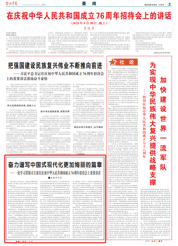 ——一论学习贯彻习主席在庆祝中华人民共和国成立76周年招待会上重要讲话