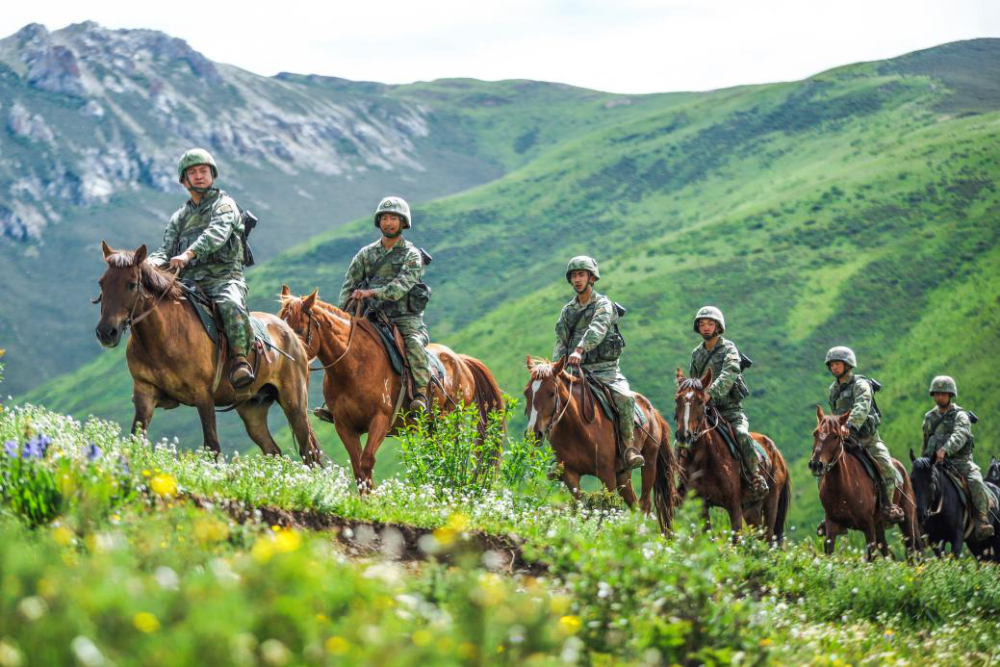 西部战区陆军某旅骑兵连组织官兵,前往海拔4000多米的巴塘草原,在高寒缺氧的艰苦环境中执行巡逻任务。(万方伟、严楚)