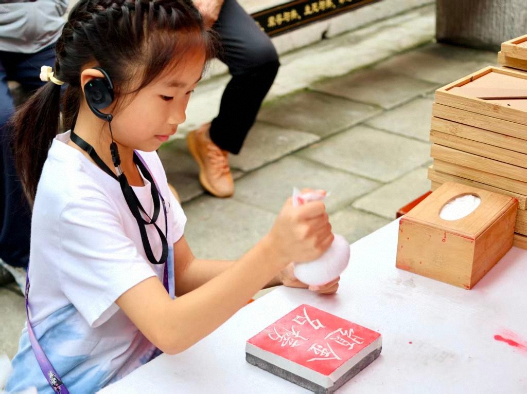 晨曦初露,济宁曲阜孔庙大成殿前,身着朱红礼服的主礼官手持笏板,朗声宣礼。游客整理衣冠,肃然而立,在庄重的“祈福拜师”仪式中躬身行礼。仪式结束后,体验区内墨香弥漫,游客轻抚拓板、蘸墨铺纸,亲手拓印《论语》篇章,在新潮体验中感受传统文化。“亲手拓印让儒家文化变得可触可感。”来自江苏徐州的游客王女士感慨道。