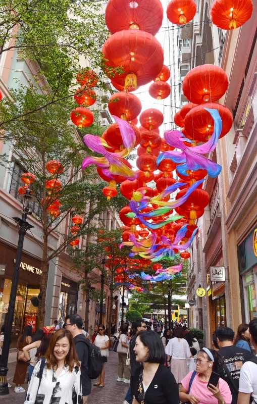随着国庆、中秋的临近,香港街头张灯结彩。