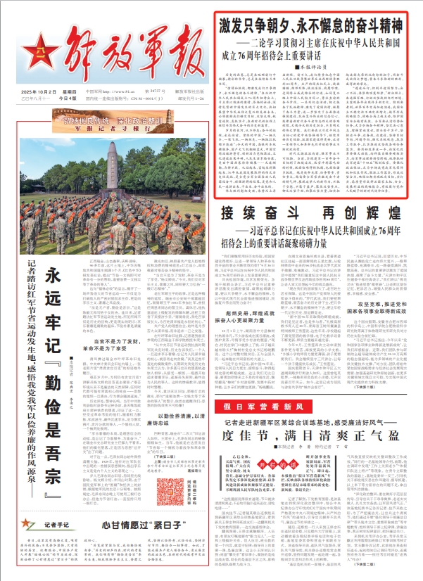 “憧憬和挑战,都激发我们只争朝夕、永不懈怠的奋斗精神。”在庆祝中华人民共和国成立76周年招待会上,习主席以饱满的激情、昂扬的话语,深情礼赞新中国发生的巨大变化,热切展望中华民族伟大复兴的美好未来,必将激励我们锚定目标、攻坚克难,锐意进取、真抓实干,在新时代新征程上继续书写伟大奋斗的历史新篇章。
