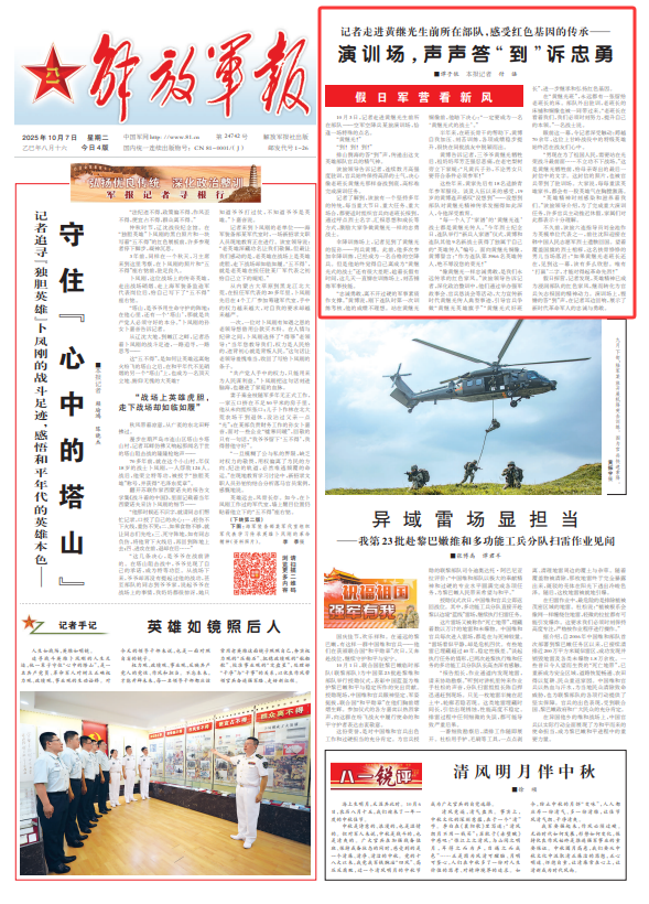 假日探营,记者发现,英雄精神已成为浸润部队的红色家风,继而转化为官兵矢志报国的精神动力。演训场上,铿锵的答“到”声,在记者耳边回响,展示了新时代革命军人的忠诚与勇敢。