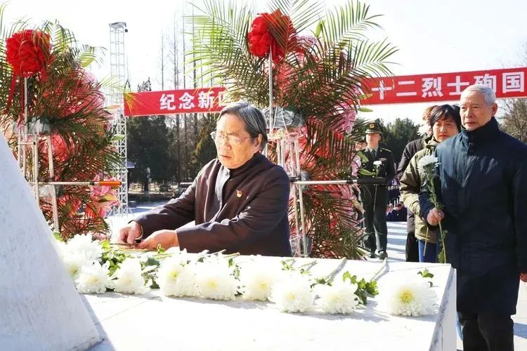 李爱云向“烈士哥哥”们敬献鲜花,表达哀思。刘须连 摄