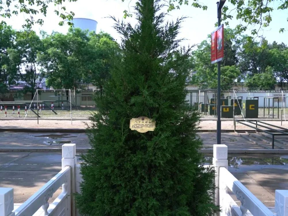 “刘老庄连”宿舍楼前一棵从刘老庄八十二烈士陵园带回并被命名为“八十二棵松”的小树。新华社记者王春涛 摄