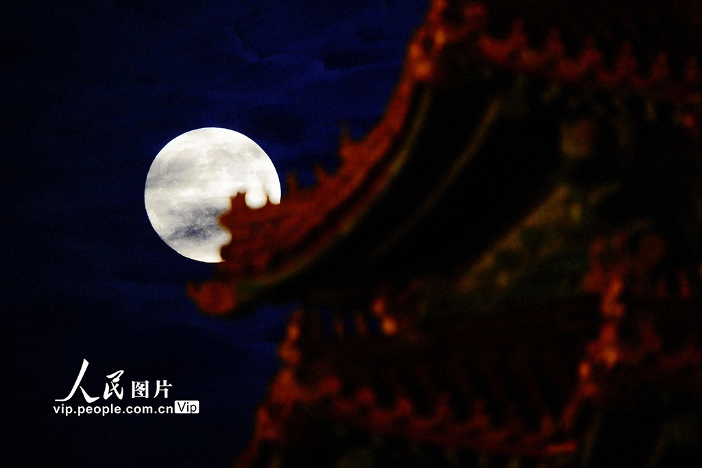 10月6日,一轮圆月现身夜空,与故宫角楼上的脊兽悄然同框。宋家儒摄(人民图片网)