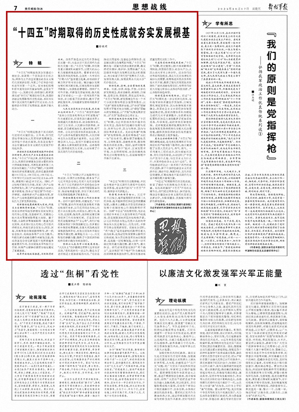 “十四五”时期取得的历史性成就,彰显了理论与实践相结合的强大力量。站在系统谋划“十五五”开局的关键节点,我们更应乘势而上、踔厉奋发,推动全面建设社会主义现代化国家迈上新台阶,为强国建设、民族复兴续写新的辉煌篇章。