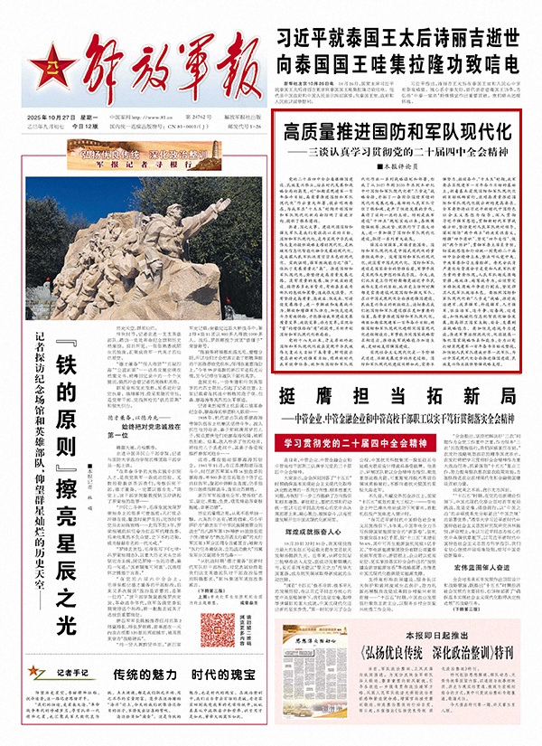 党的二十届四中全会着眼强国建设、民族复兴伟业,站在时代发展和战略全局的高度,对“如期实现建军一百年奋斗目标,高质量推进国防和军队现代化”作出重大部署、提出明确要求,为我军在“十五五”时期开创国防和军队现代化新局面指明了前进方向、提供了根本遵循。