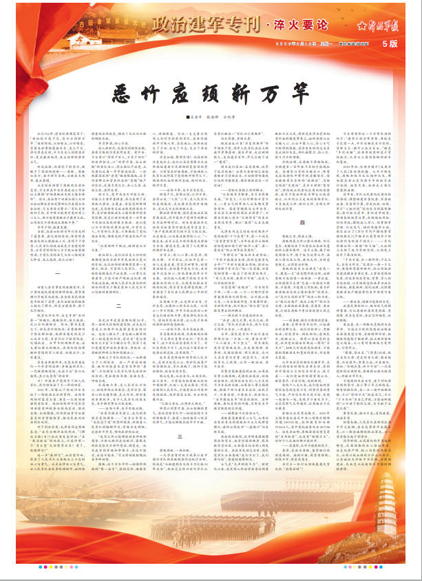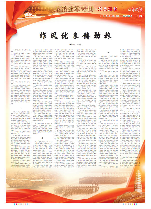 “风展红旗如画。”这壮丽的画卷里,有古田的炭火红,有武夷山的马蹄声,有娄山关的嘹亮军号,有腊子口的猎猎战旗,更有一代又一代军人从未停歇的坚守与担当。