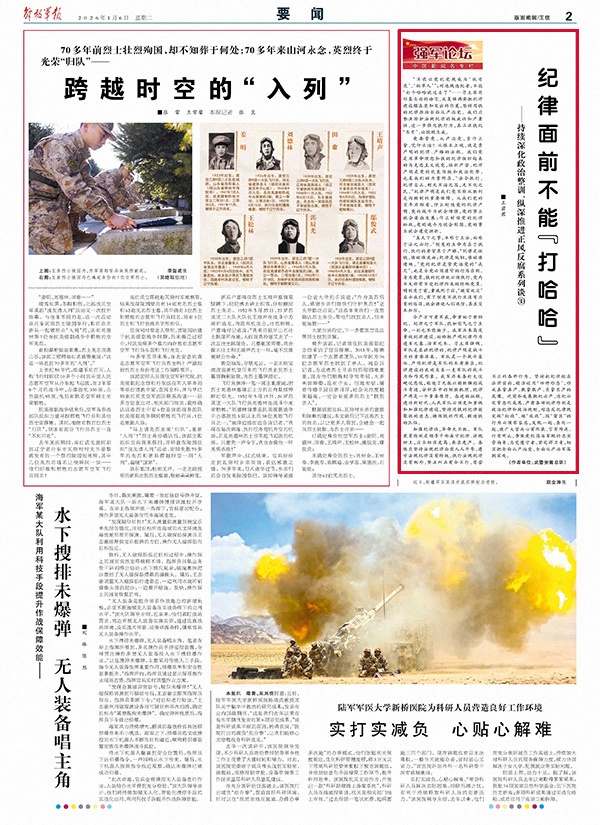 令严方可肃军威,命重始于整纲纪。纪律之于军队,犹如空气之于生命,一刻也不能缺少。我军历来高度重视纪律建设,始终把严明纪律作为建军之基、治军之本。习主席强调,军队是最讲纪律的,纪律严明是战斗力的重要源泉。军队是一个战斗集体,严明纪律是军队的本质要求,纪律建设的成效关系一支军队的战斗力和作风形象。我军历来善打大仗硬仗恶仗,创造了无数以弱胜强的战斗奇迹,分析其中的制胜机理,纪律严明是一个重要原因。奋进新征程,建功新时代,人民军队必须更加重视和加强纪律建设,坚持用铁的纪律凝聚铁的意志、锤炼铁的作风、锻造铁的队伍。