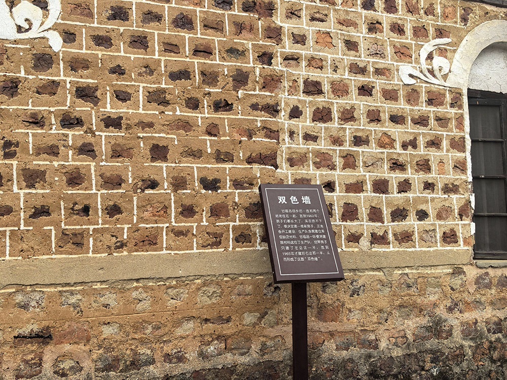 在沿背村的甘祖昌故居,我们看到一面独特的双色墙,半壁灰黄、半壁赭红,沿着墙壁缝隙细细摩挲,触到了这样一个故事: