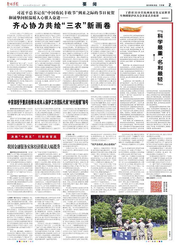 “科学最重,名利最轻”