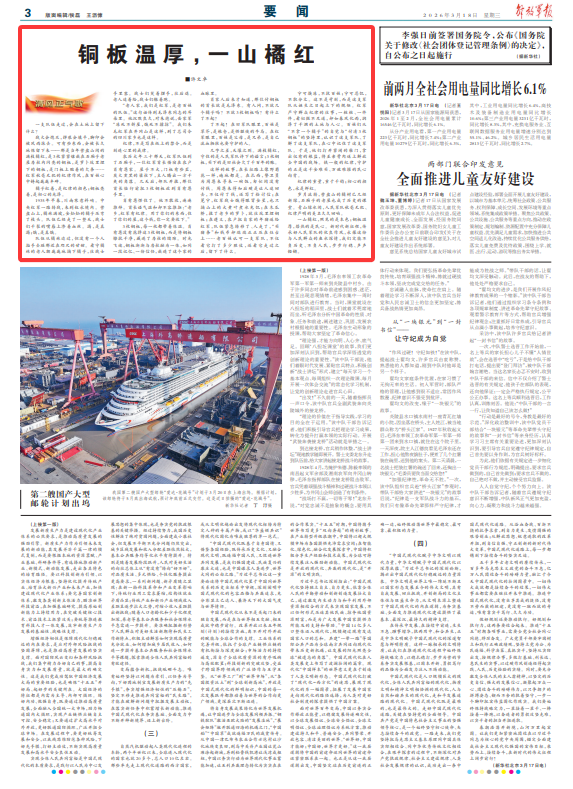 一山橘红,照见的是本色;铜板温厚,焐热的是民心。新时代新征程,传承好人民军队的优良作风,永葆这份与人民群众的鱼水深情,我们定能不负历史、不负人民,步步行稳、声声铿锵。