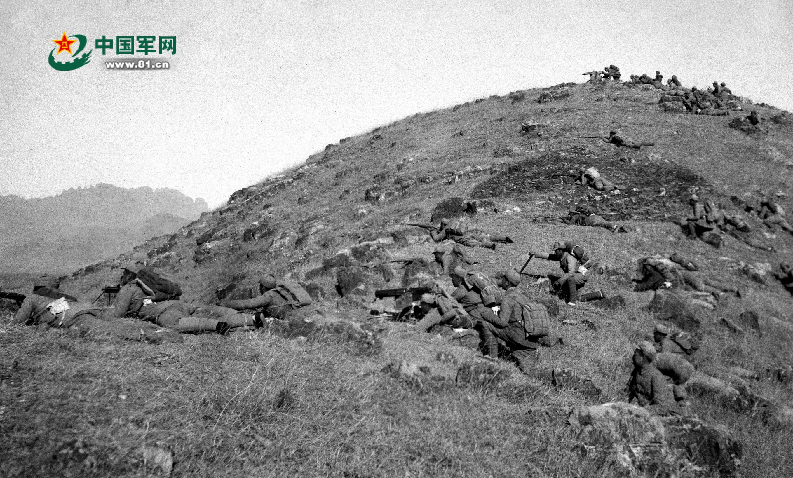 抗战期间,新四军某部进行山地进攻战斗训练。