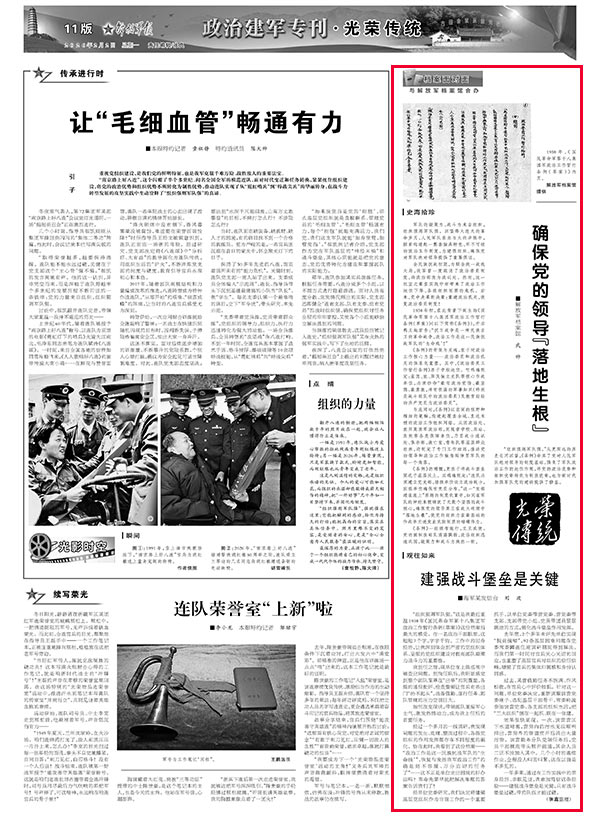军队的凝聚力、战斗力来自组织,组织强则军队强。回望烽火连天的革命岁月,人民军队在血与火的淬炼中,探索构建起一整套独具特色、牢不可破的政治工作制度,为建强组织、确保党对军队绝对领导提供了重要保证。