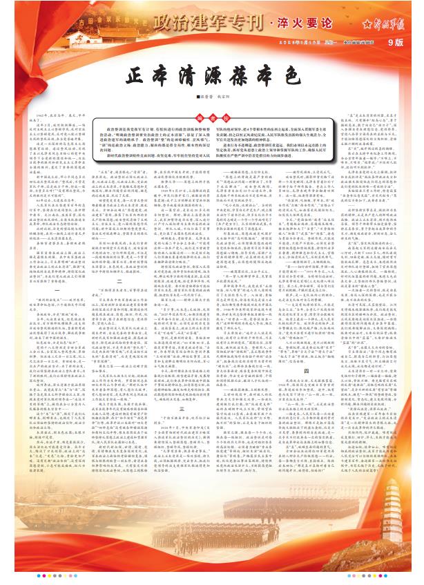 站在实现建军一百年奋斗目标的历史关口,“突出政治上的正本清源”是一次精神源头的寻根之旅,也是一次自我革命的淬火锻造。