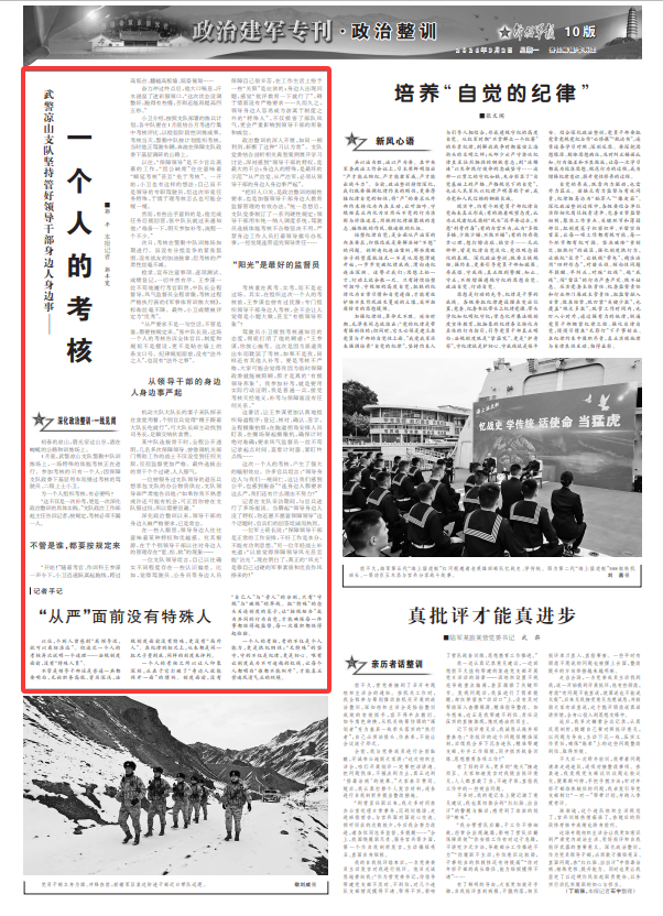 这次一个人的考核,产生了强大的辐射效应。许多官兵坦言:“领导身边人与我们一视同仁,这让我们感到公平,也感到振奋”“连身边人都要求这么严,我们还有什么理由不努力?”