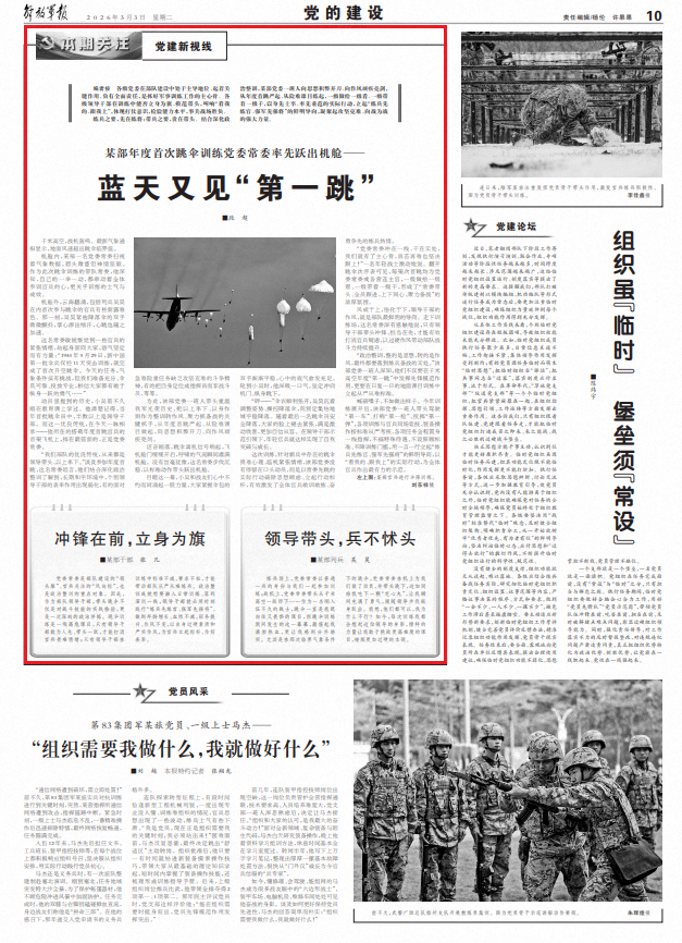 “党委常委冲在一线、干在实处,我们就有了主心骨,再苦再难也坚决跟上!”一名年轻战士激动地说。翻开跳伞次序表可见,每架次首跳均为党委常委或各营连主官,一级做给一级看、一级带着一级干,形成了“常委带头、全员跟进,上下同心、聚力备战”的浓厚氛围。