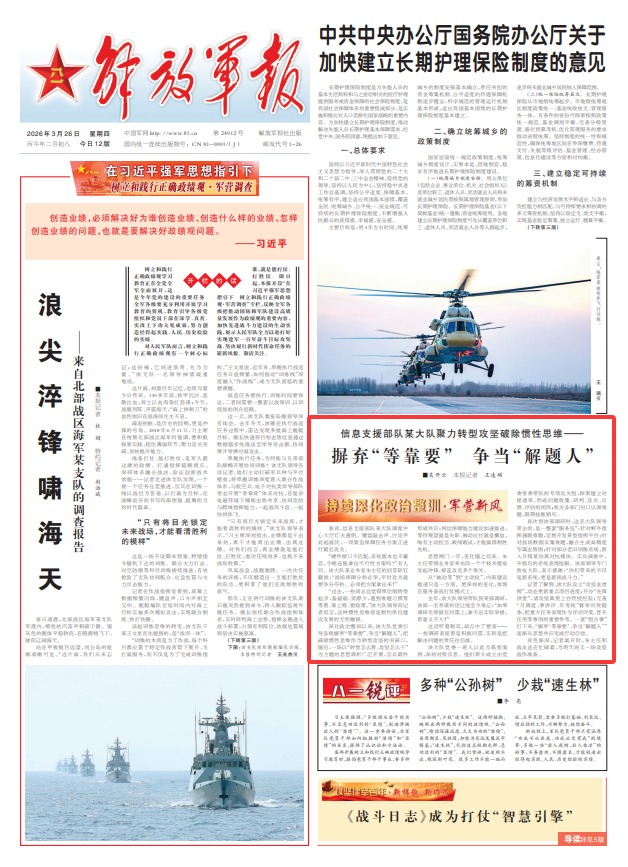 深化政治整训以来,该大队党委引导各级摒弃“等靠要”、争当“解题人”,把破除惯性思维作为转型攻坚的突破口。随后,一场以“转型怎么看、攻坚怎么干”为主题的思想辨析广泛开展,官兵最终形成共识:网信保障能力建设加速推进,等待观望就是失职、被动应付就是懈怠,唯有主动担当、敢闯敢试,才能赢得制胜先机。