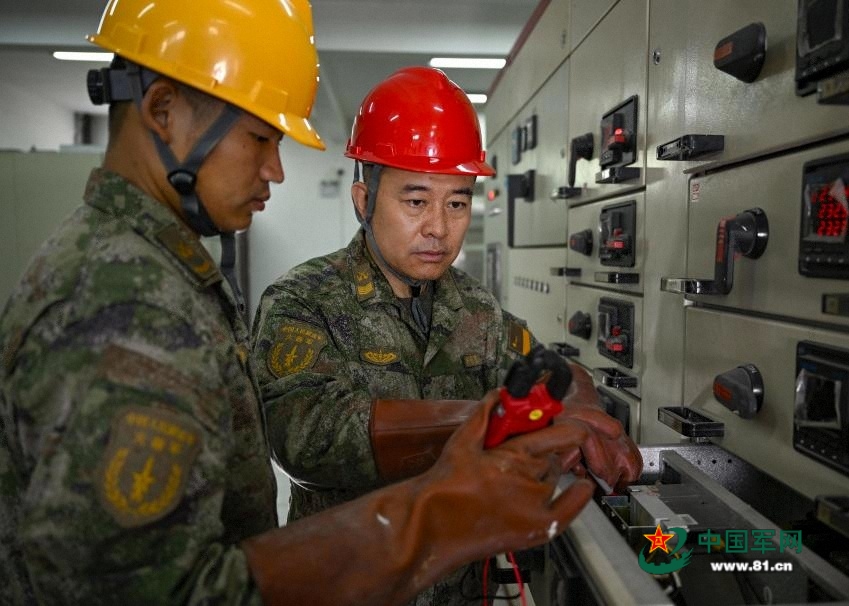 火箭军某旅一级军士长崔道虎(右)检修线路故障。刘明松摄