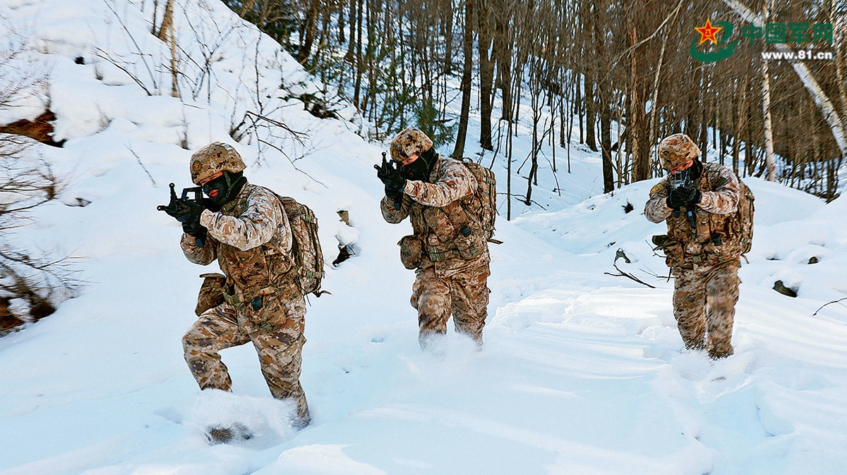 数九寒冬,沈阳联勤保障中心某旅组织官兵深入80多年前东北抗联驻扎过的那片“密营”,在冰天雪地中展开实战化训练。