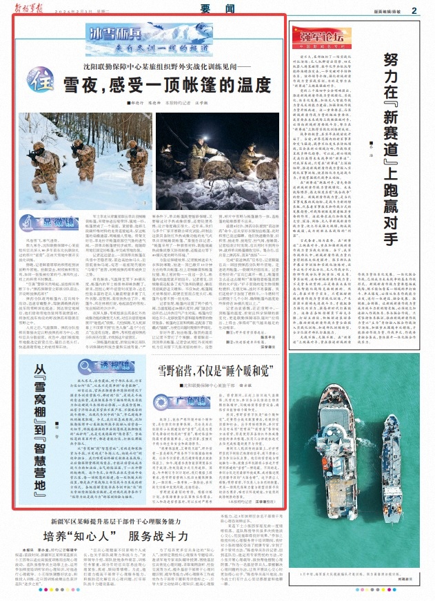 记者由衷感慨,茫茫雪野中,一顶帐篷的温度,折射出科学保障的新变化,更是联勤保障部队随时“拉得出、上得去、保得好”底气越来越足的生动缩影。