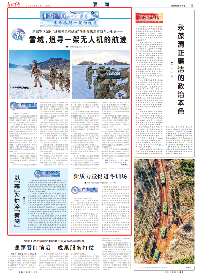 来源:中国军网-解放军报 作者:纵恒 刘维姣 等 责任编辑:王一亘 发布:2026-02-04 06:46:44