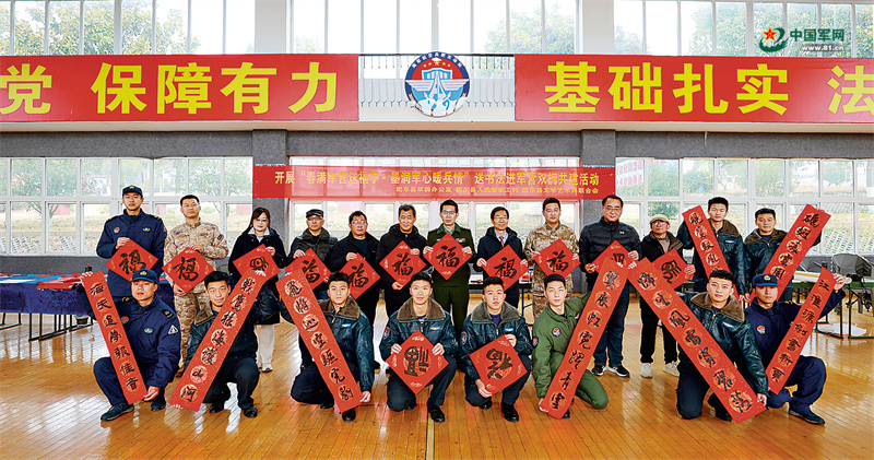 春节前夕,安徽省肥东县人武部联合县双拥办开展送书法进军营双拥共建活动,邀请当地书法家走进驻军部队写春联、送祝福。武志豪 摄