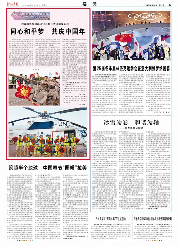 中国维和官兵在坚守岗位、履行使命中庆祝马年春节。他们以春节为纽带,向世界讲述中国故事、传递和平理念。在忠诚履行维和使命的征程上,中国维和官兵将继续以责任守护安宁,以真诚传递友谊,用实际行动诠释大国担当,为维护世界和平作出新的贡献。