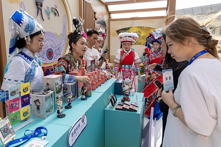 12月3日,在2025企业家博鳌论坛国民共“拾”光市集,参会嘉宾正在了解非遗文创。新华网记者 钟奕摄
