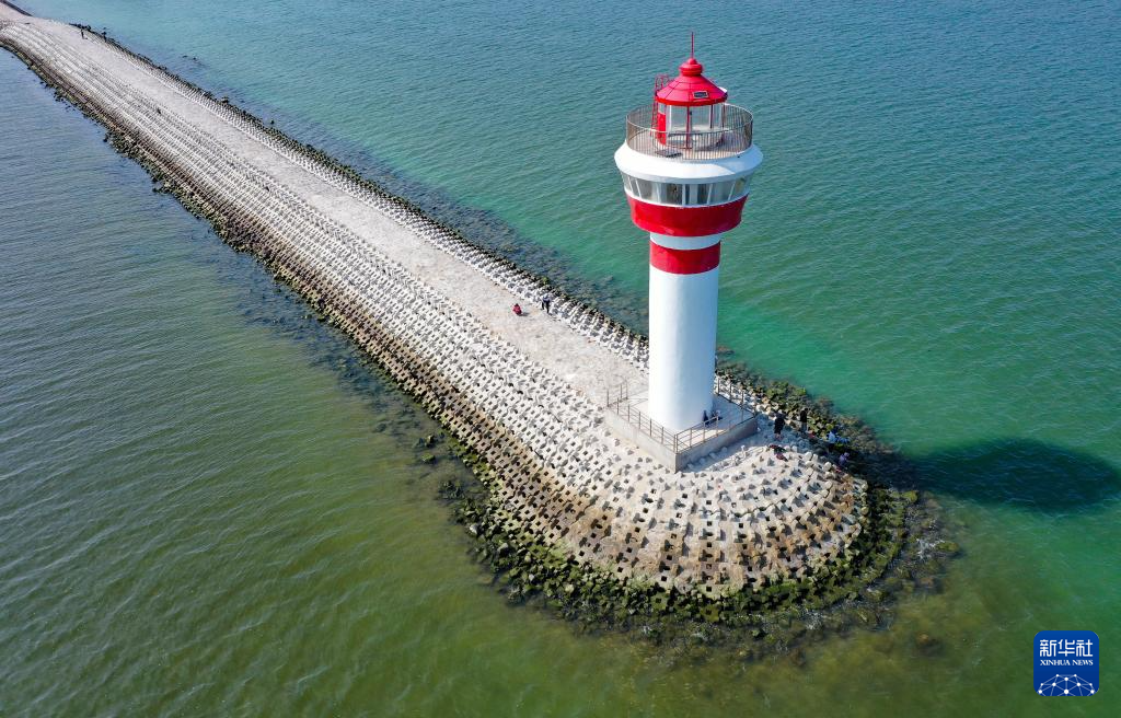 3月18日拍摄的琼海市潭门镇海边的灯塔(无人机照片)。