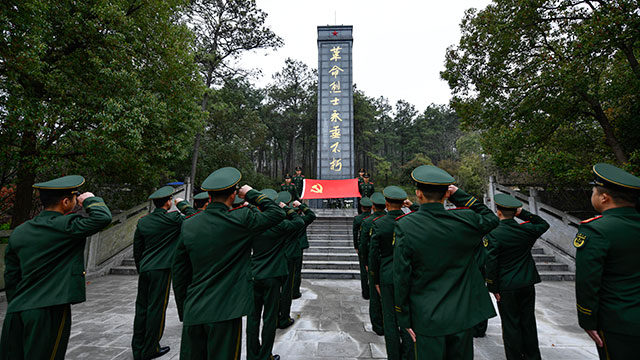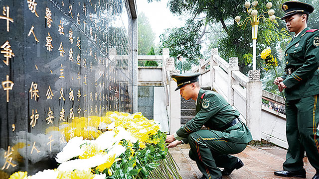 4月2日,广西全州县在红军长征湘江战役纪念园举行“清明祭英烈·薪火永相传”祭扫活动,祭奠红军英烈。