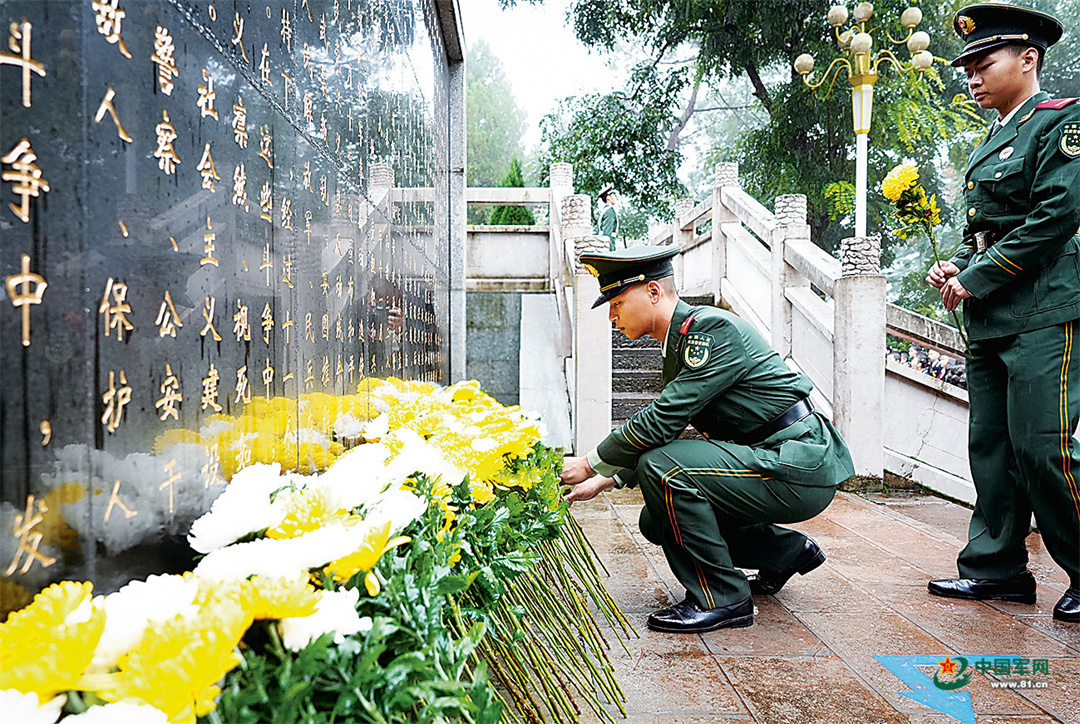 武警贵州总队黔西南支队官兵到驻地烈士陵园祭奠英烈。罗康 摄