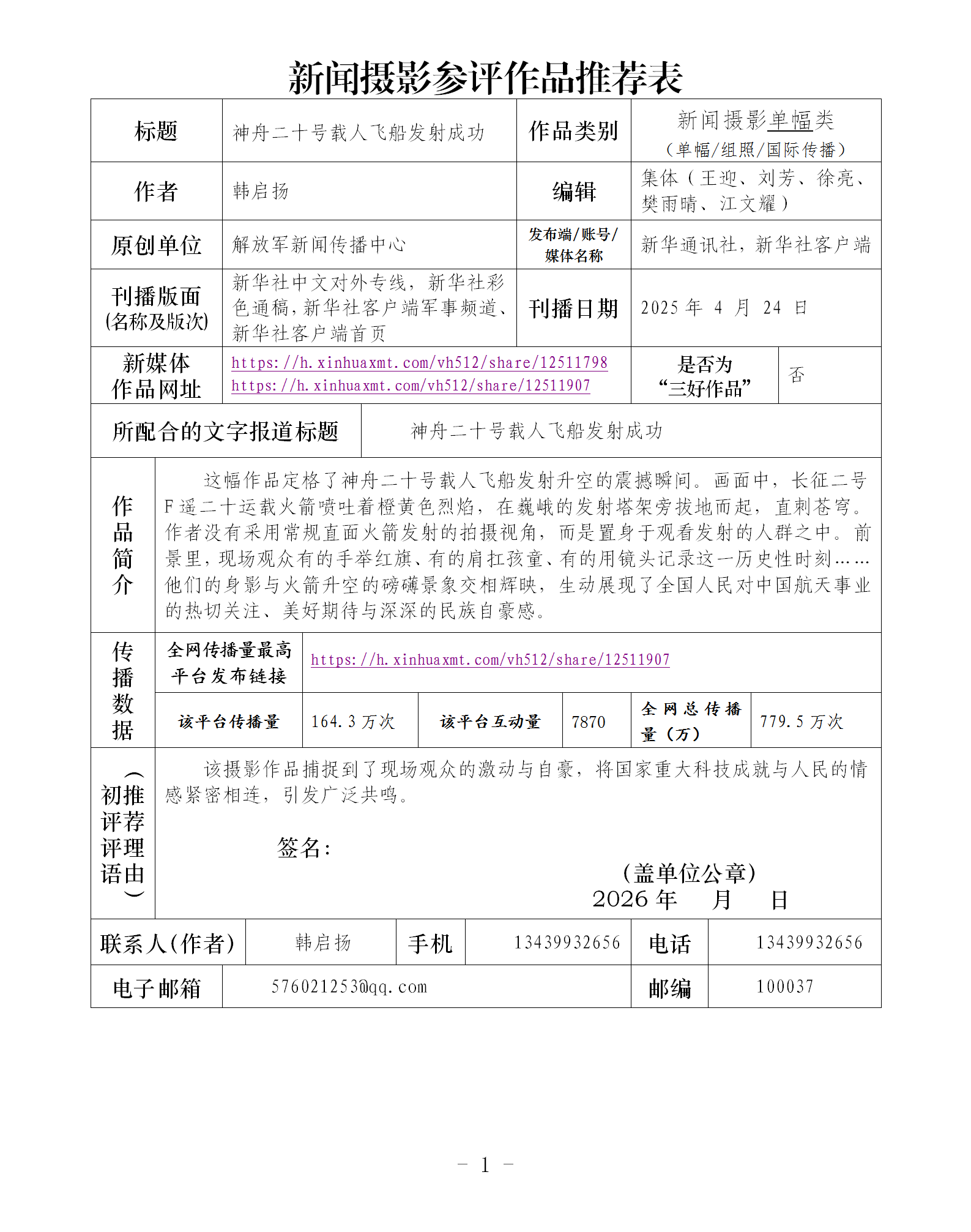 神舟二十号载人飞船发射成功