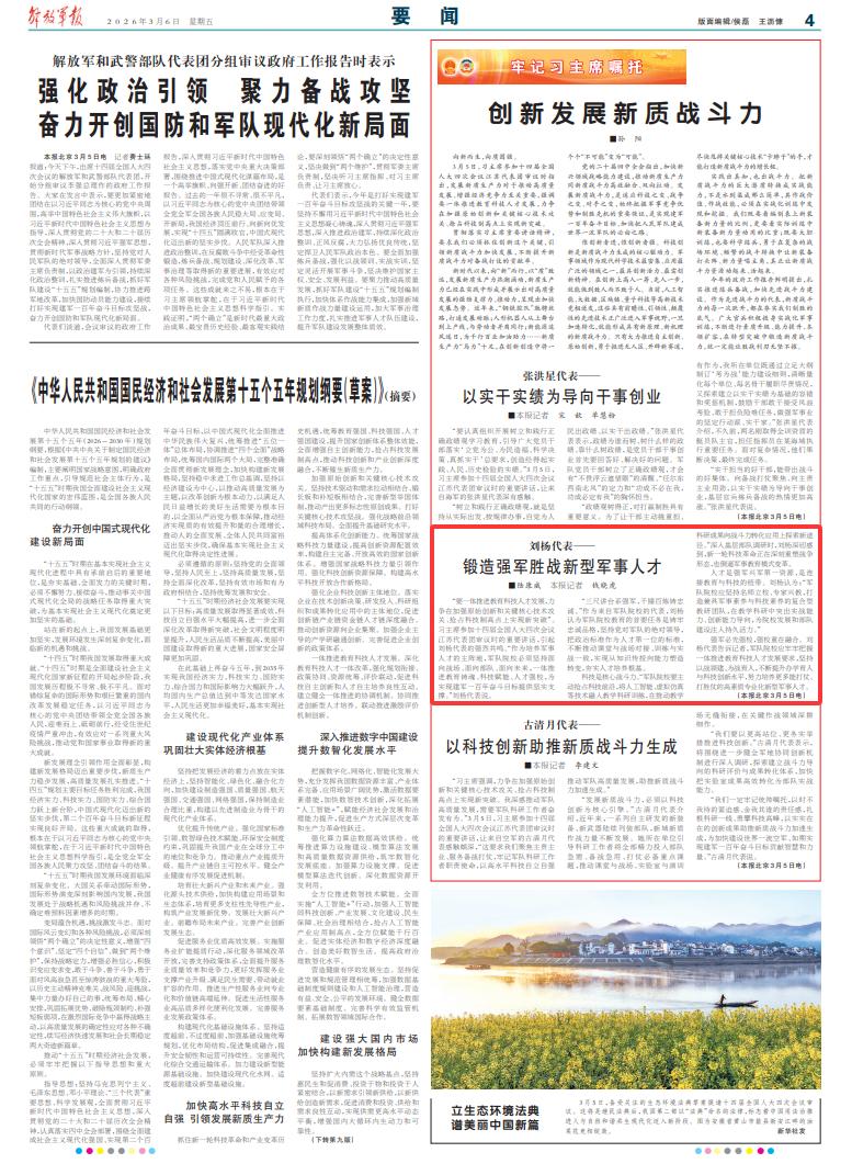 (解放军报北京3月5日电)