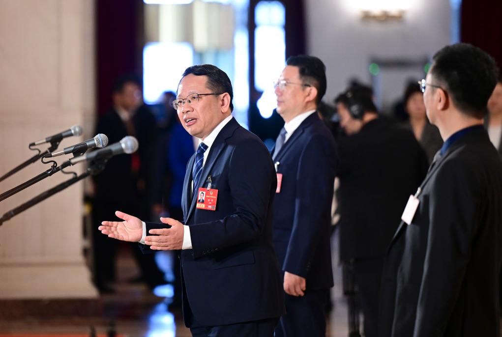 3月11日,全国政协十四届四次会议第三场“委员通道”集体采访活动在北京人民大会堂举行。
