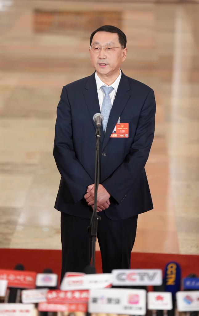 3月12日,第十四届全国人民代表大会第四次会议第三场“部长通道”集中采访活动在北京人民大会堂举行。这是自然资源部部长关志鸥接受媒体采访。