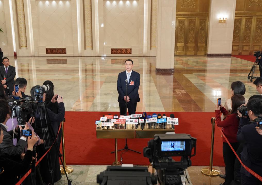 3月12日,第十四届全国人民代表大会第四次会议第三场“部长通道”集中采访活动在北京人民大会堂举行。这是生态环境部部长黄润秋接受媒体采访。