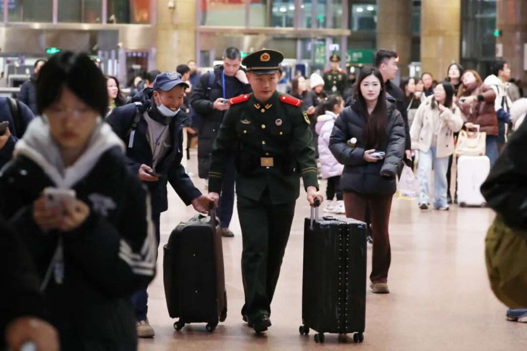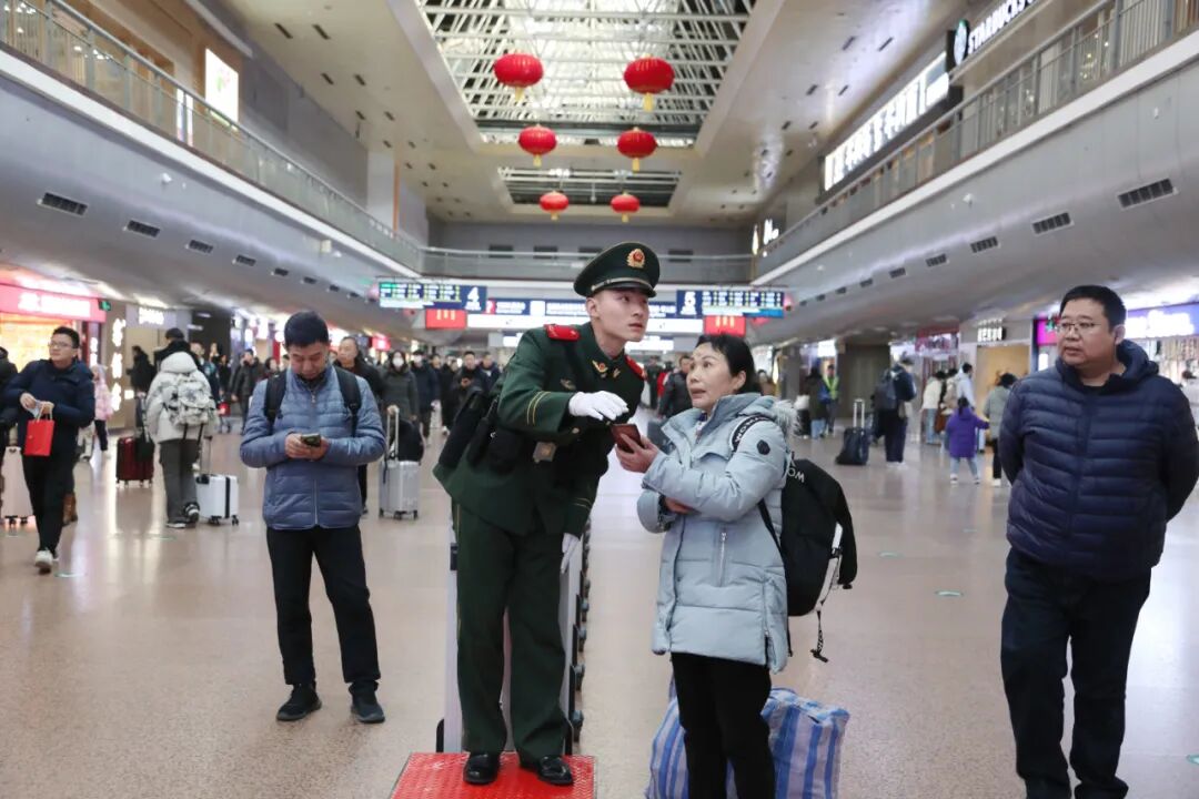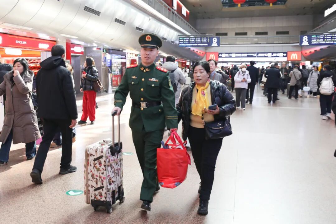 2026年全国春运已正式启动,各地交通枢纽陆续迎来返乡、探亲的出行高峰。连日来,在北京重要交通枢纽北京西站,客流攀升明显、站内人潮涌动,武警北京总队某支队官兵依据春运工作部署,组织官兵进驻车站重点区域,全面开展执勤保障任务,守护旅客平安返乡路。