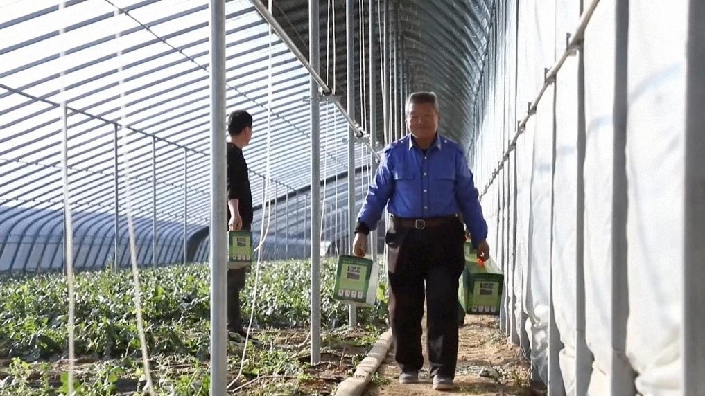 在沧州市海兴县后刁村的温室大棚,村民们俯身采摘、分拣装箱。这些从盐碱地里长出来的新鲜果蔬,正赶着供应春节前的市场。