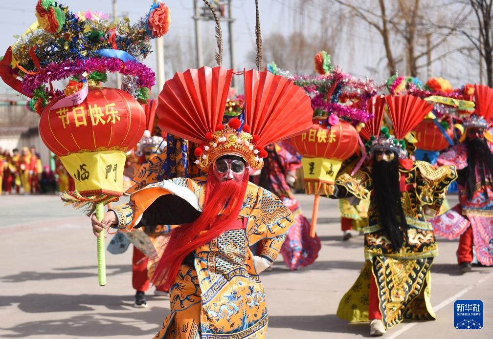 2月6日,在甘肃省临夏回族自治州永靖县西河镇白川村,村民表演社火节目。