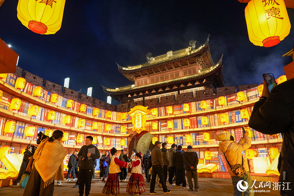 人民网宁波2月12日电 (章勇涛)昨晚,2026宁波江北慈城马年新春灯会正式启幕。近百组彩灯璀璨亮相,40余组花灯沿一公里古城墙依次铺陈,光影与古建交相辉映,为市民游客献上一场沉浸式新春光影盛宴,满城尽是喜庆祥和年味。