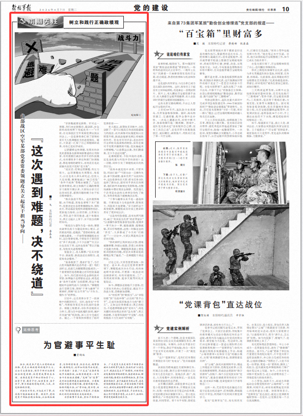 从“怕担责”到“敢担当”,从“求稳怕错”到“为战冲锋”,以往的“烫手山芋”,正成为该部淬炼战斗力的“磨刀石”。正如这位常委感言:真正的担当,不是遇事绕着走的“老好人”,而是关键时刻站得出来的“急先锋”;真正的政绩,不是零风险的“平安账”,而是助推战斗力生成的“实效账”。