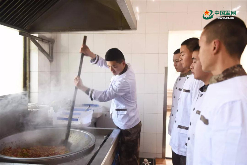 天寒地冻的天里,官兵乐得吃上一口火锅。“冬吃萝卜夏吃姜,不用医生开药方!嘿!冬天啊,吃萝卜好!”炊事班班长潘雪松说着揭开锅盖,往锅里倒萝卜块:“五分钟后,分锅!”用作火锅锅底的高汤要一直从中午熬到下午 5 点,不仅熬手艺还熬耐心。