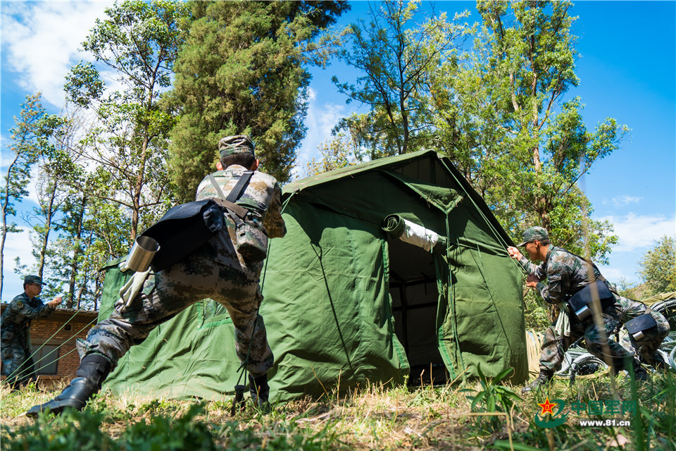 参演官兵搭建帐篷。李志勇 摄