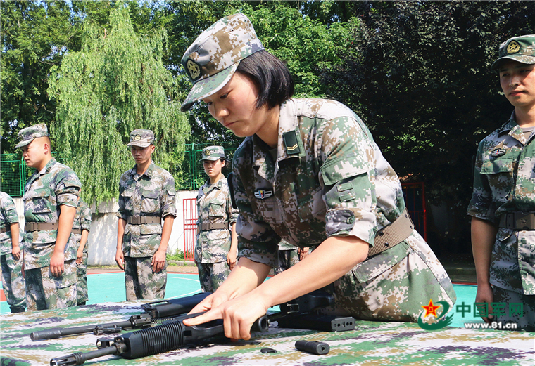 女兵正在进行枪械拆装。崔万刚摄