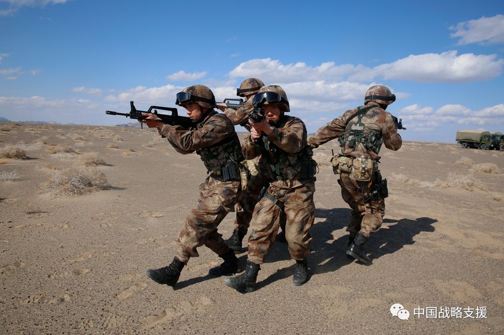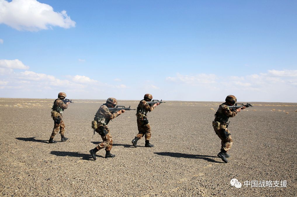 为提升官兵全地域作战能力,战略支援部队某部瞄准任务需求,开展沙漠戈壁专项反恐防暴训练,在摔打磨练中砺练反恐精兵。