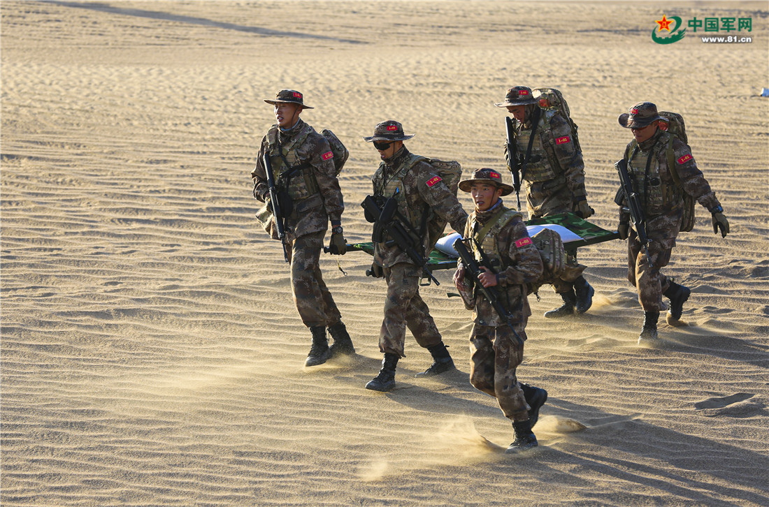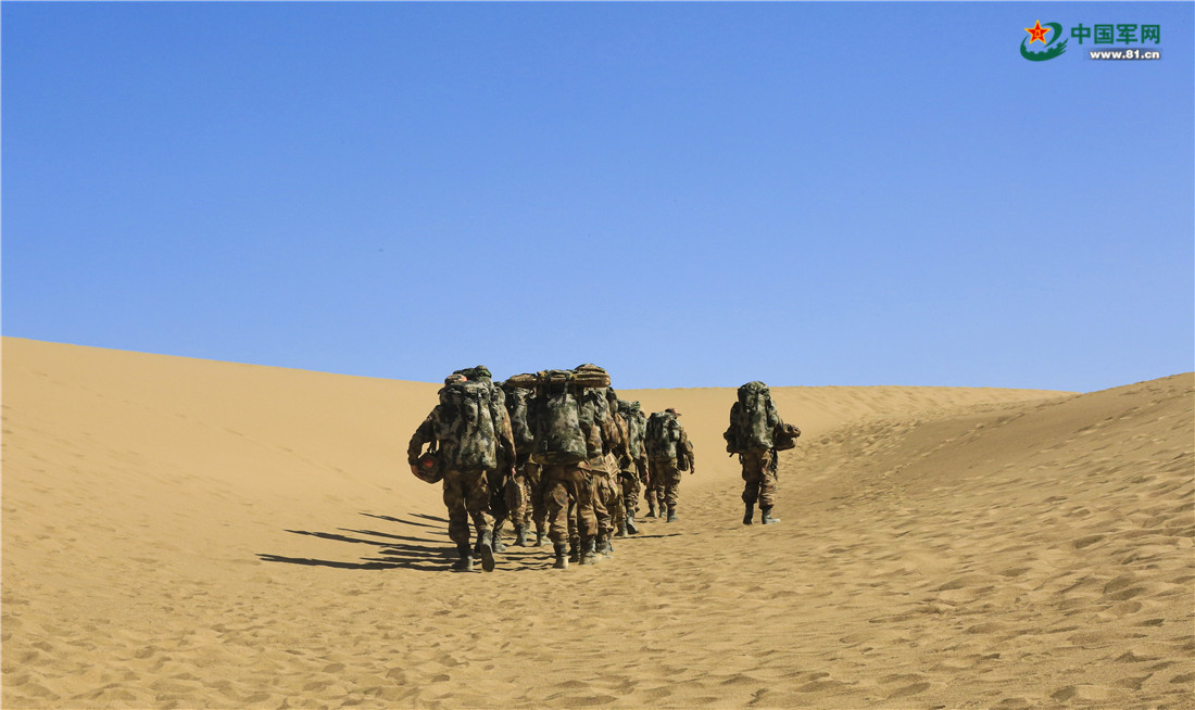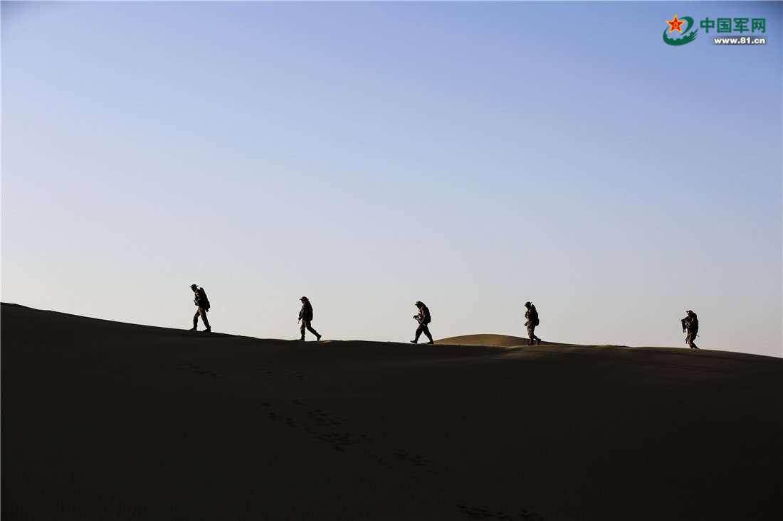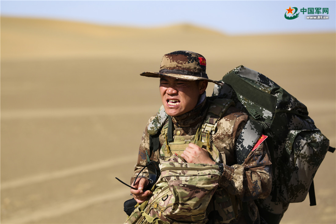 “沙漠行军别提多‘酸爽’了,阳光照射在金黄色的沙丘上,眼前看到的都一样,脚踩在沙子上软绵绵的,途中还要受到各种‘骚扰’,每天都像在坐‘过山车’。”防暴队员曹锐感慨。